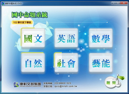 102學年下學期 康軒版 國中一年級~三年級 (全年級、全領域) 電腦題庫 繁體中文教學合輯版(DVD一片裝)